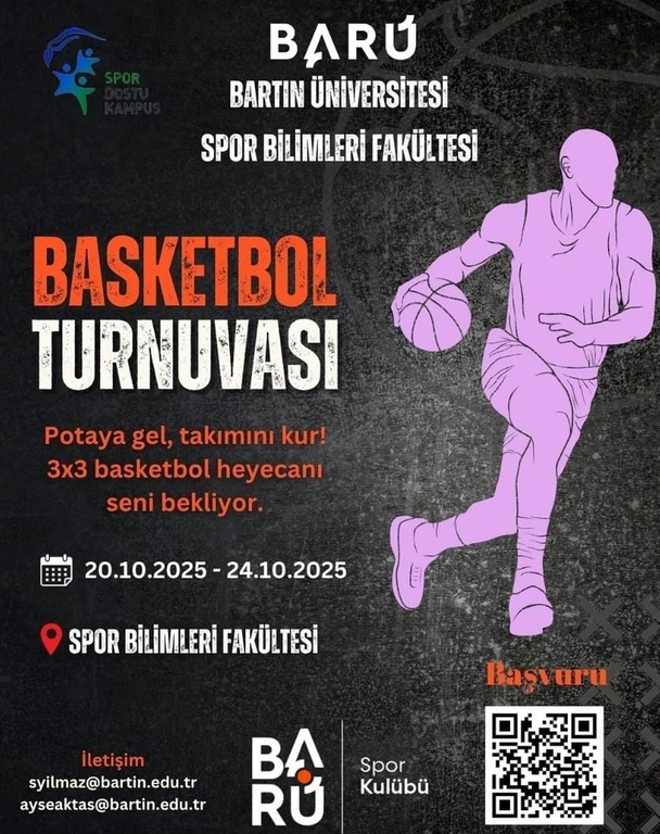 Bartın Üniversitesi (BARÜ) Spor Bilimleri Fakültesi, "Spor Dostu Kampüs" vizyonu doğrultusunda yeni bir spor etkinliğine ev sahipliği yapmaya hazırlanıyor. Fakülte bünyesindeki Spor Kulübü tarafından organize edilen 3x3 Basketbol Turnuvası, 20-24 Ekim 2025 tarihleri arasında gerçekleştirilecek.